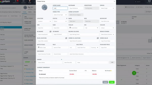 When adding new horses into your Prism database, you can now choose to populate horse data from the Australian Stud Book (ASB).