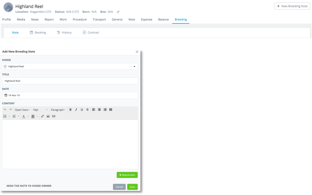 You can add breeding notes for a Stallion regarding their progress.