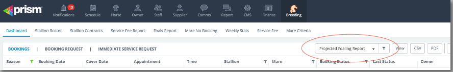 Via the Breeding > Dashboard, selected the Projected Foaling Report in the available drop down.
