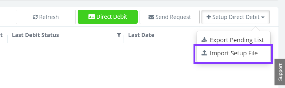 6. Click Set Up Direct Debit again and then click on Import Setup File. Select the file you saved to upload it into Prism.