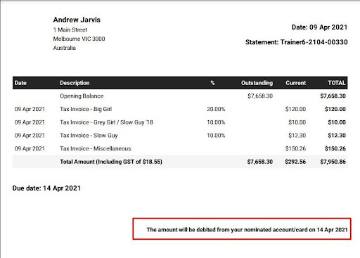 The Statement/Invoice issued to any Owner who has authorised Direct Debit will include the wording "‘The amount will be debited to your nominated account on date xxx", and the PAY button will not appear.