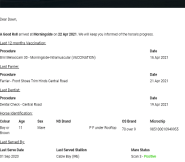 Release Date 19 November 2021 | Breeding Managing bookings, mare status and general communications with each mare owner is a constant challenge. That's why we have now enabled an email function within the Breeding Dashboard. From the Breeding ...