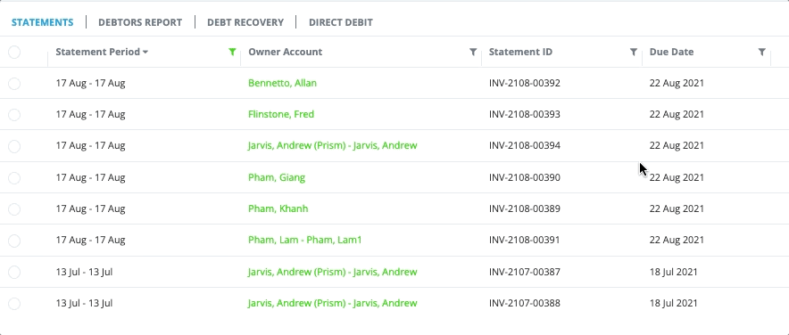 On the Finance Dashboard page, subscribers to the Prism Finance module can now filter all Statements by Statement ID.