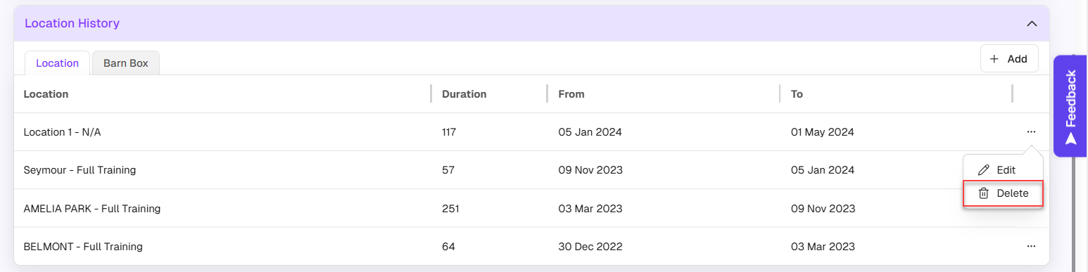 Whenever a horse is assigned a new Barn / Paddock and/or Box, this change is now recorded and displayed on the Horse Profile for three months.
