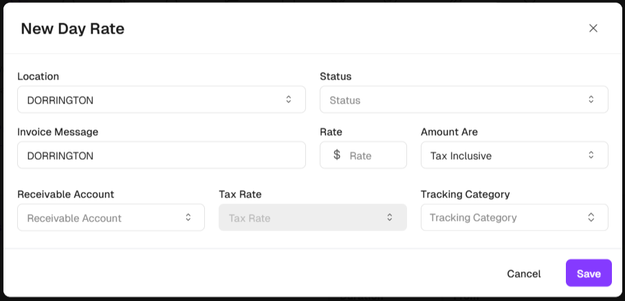 - If you choose Add day rate, open add ‘New day rate’ dialog to add new rate