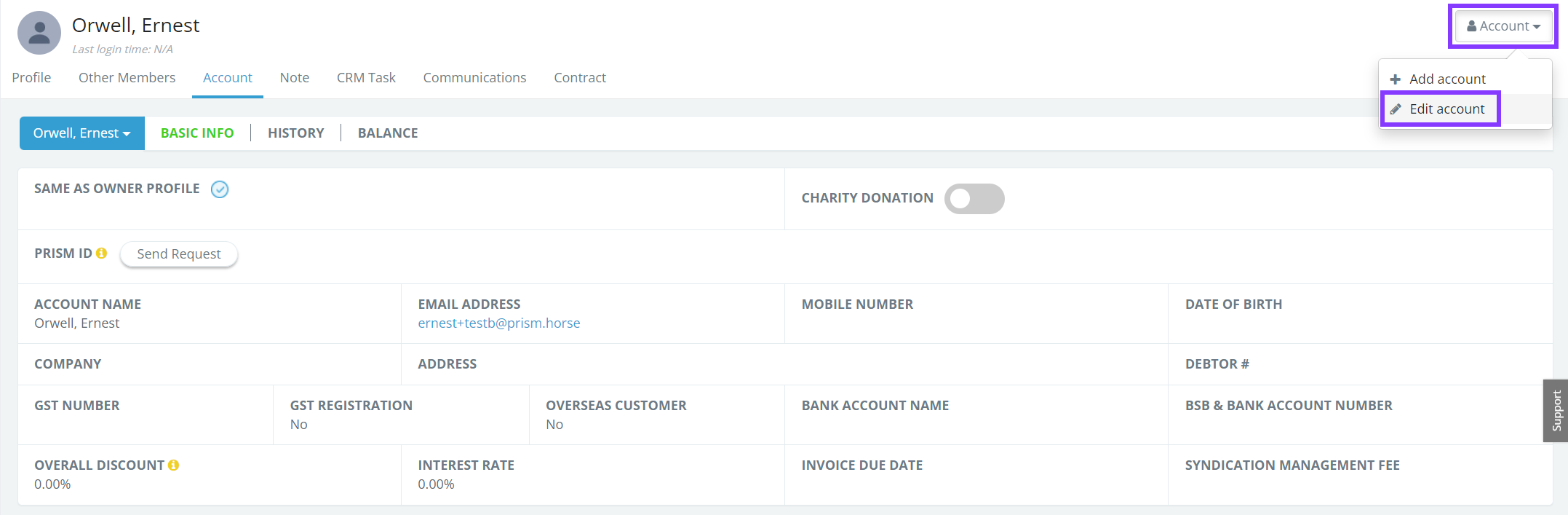 Updating the email here will only change the email where the owner receives communications to. If the owner also wants to change the email they use to log into their Prism account, please contact