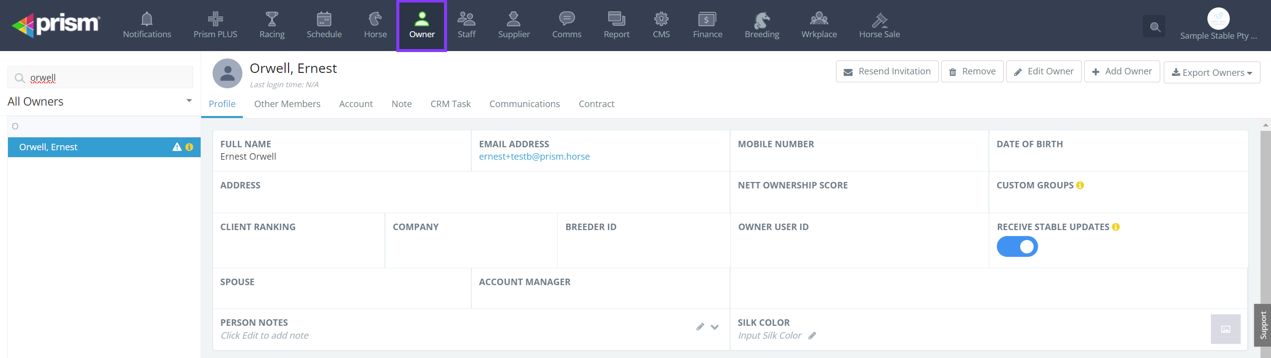 - Go to your Owner tab and select the owner you wish to edit.