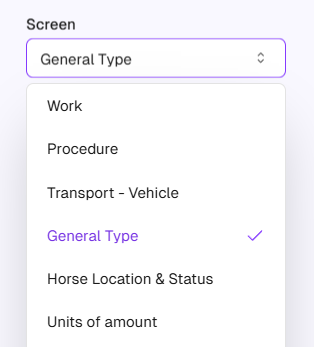 - Select General Type screen configuration