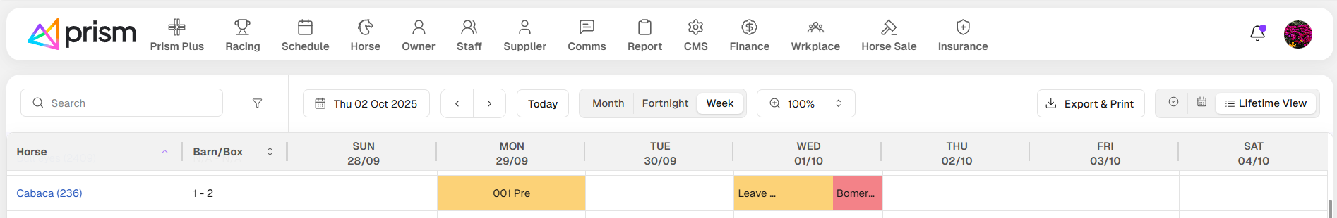 - Select a Horse or multiple Horses. Selecting multiple horses will schedule the same piece of work for each horse on the specified date.