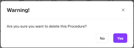 - Click on More > Delete, open warning popup. You can click the Yes button to apply. After applying, the procedure task will be deleted for all horses in that task.
