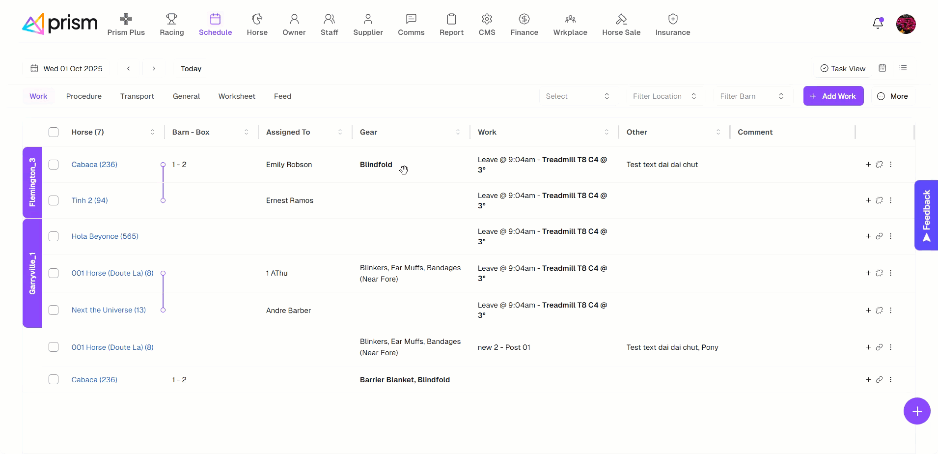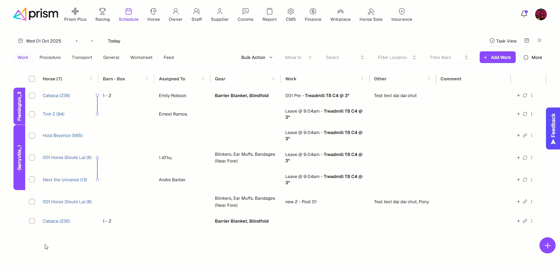 - Select the checkboxes beside horse names, then click Bulk Action > Delete to remove multiple trackworks.