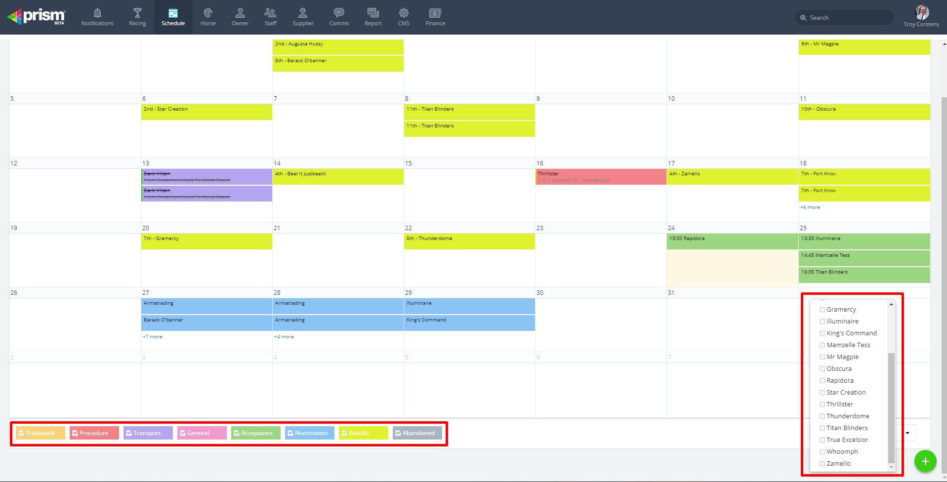 When in schedule: Races and tasks are displayed in colour coded blocks in the Calendar View. If the task has been completed, the text will be strikethrough. To view the details of each, click the coloured block and the details will pop up. If you ...