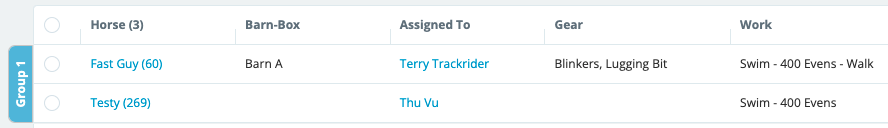 After you Group horses, the page will reload where you can see your horses grouped for their Work.