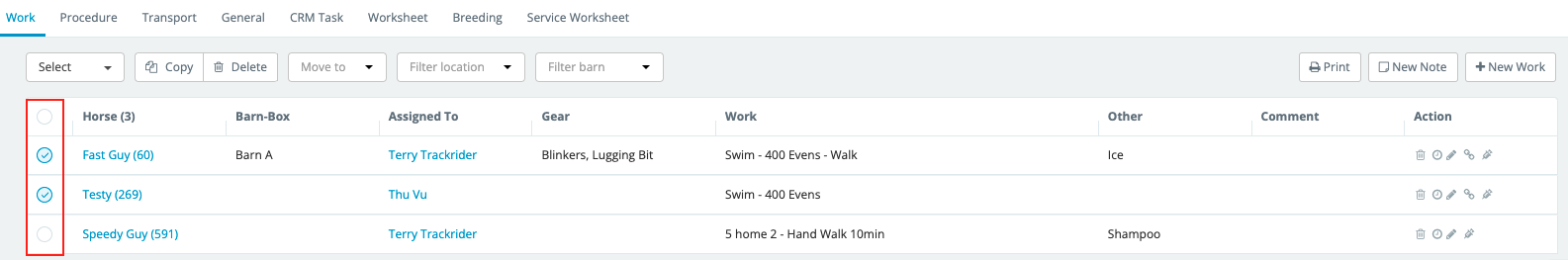 In addition to grouping horses for Trackwork (see How to group horses for Trackwork) you can also pair or link two or more horses together if they are performing the same Work. You can link horses for Trackwork via the Schedule > Work screen. Select ...
