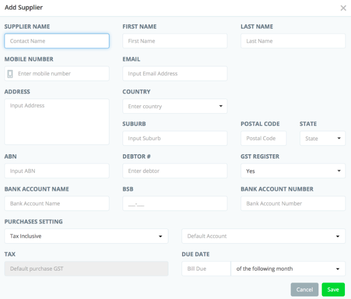 If supplier is not GST Registered, Tax Settings will be “No Tax”. This means when you capture bills from this supplier, the amount input in Cost will not include tax.