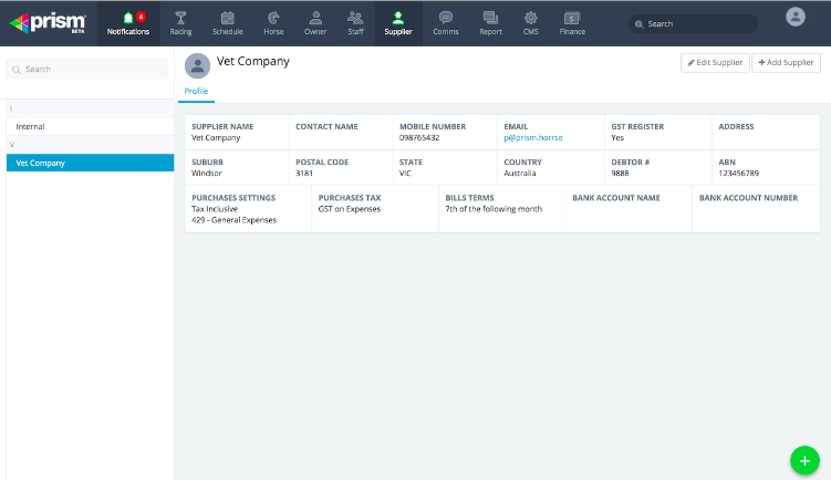 To edit a supplier, go to Supplier Page and select the supplier you want to update in the left column.