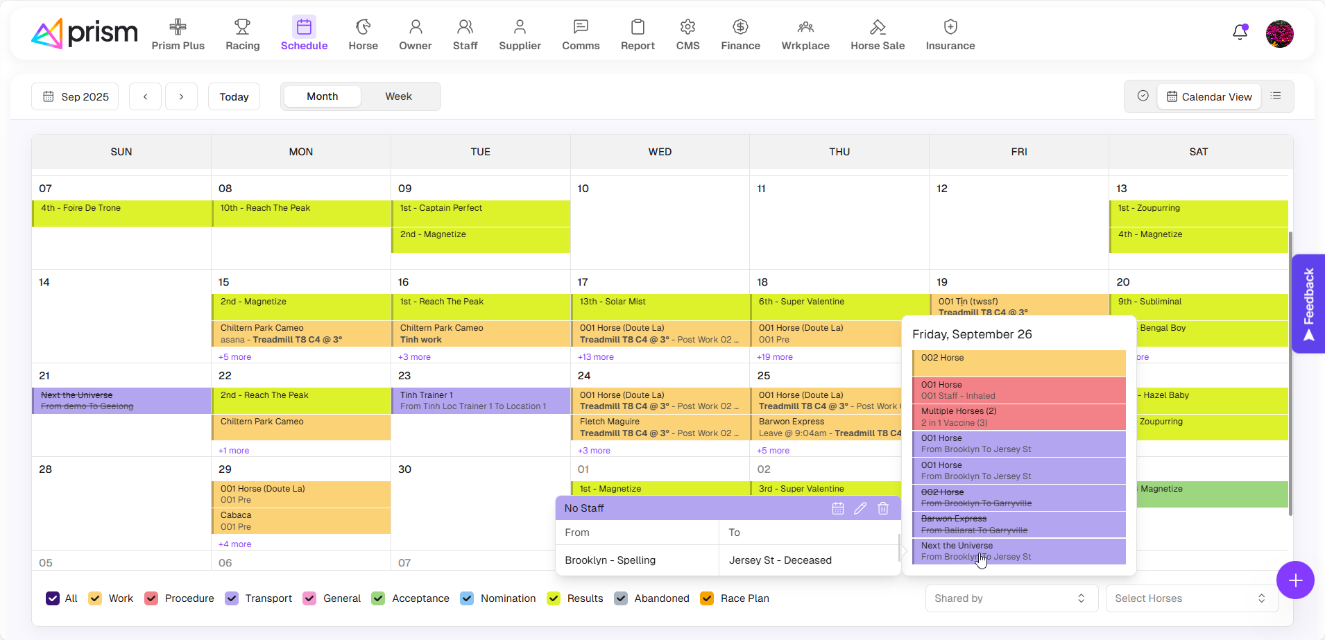 4. System will update the calendar, schedule page, horse’s task history as well as the staff’s task list