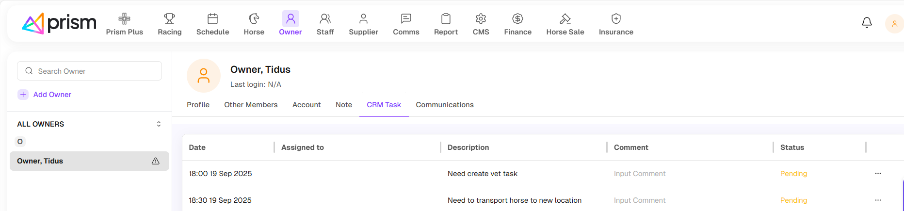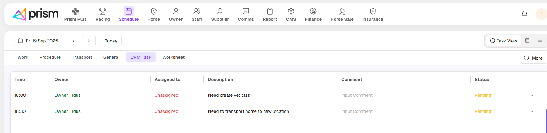This page supports managing daily CRM tasks, with data synced from Keap to Prism.