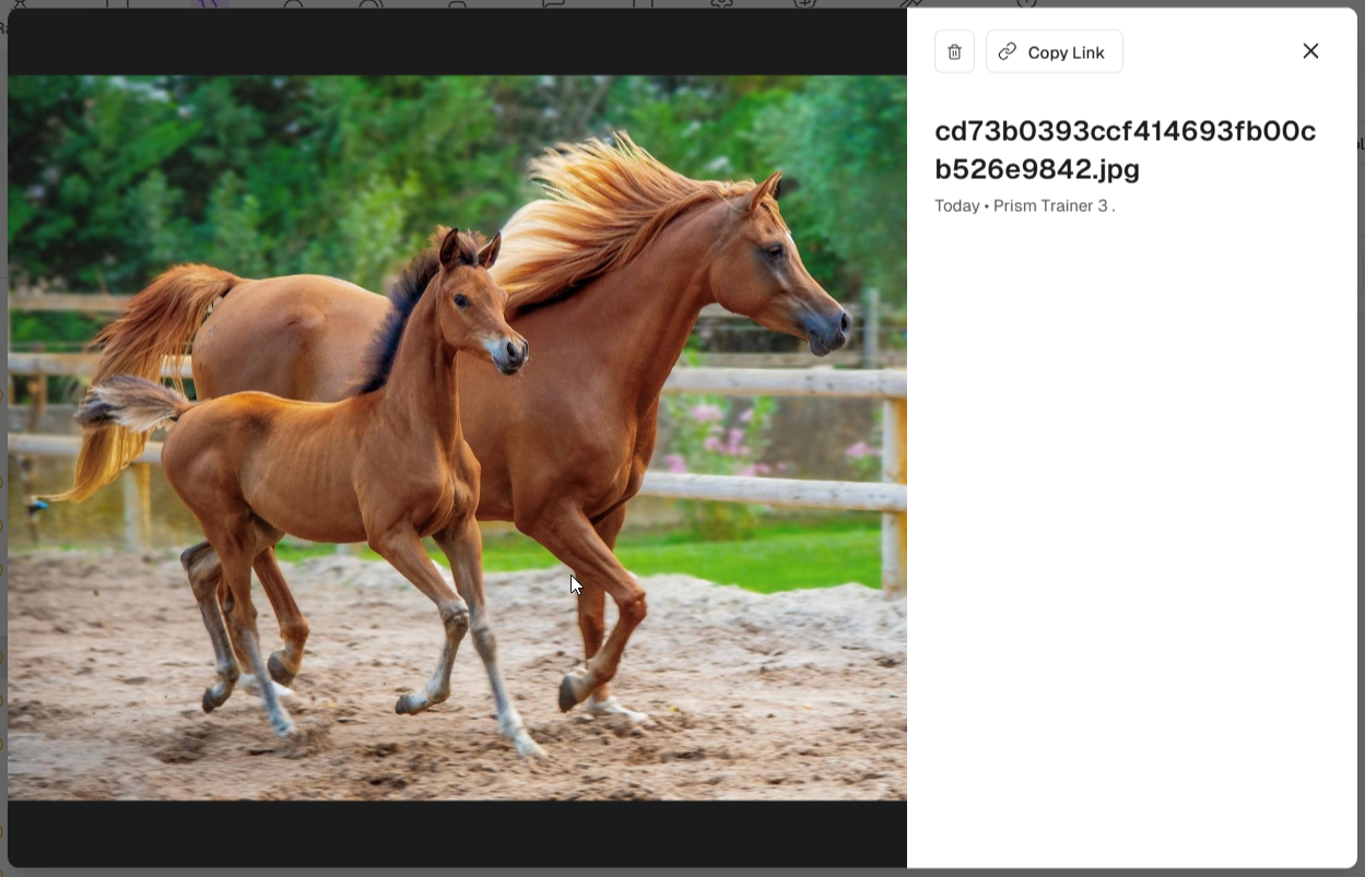 You can upload any Photo, Video or Audio file into each horse profile in Prism.