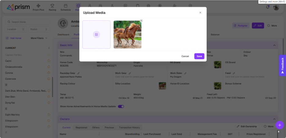 You can now upload an image from your computer to these fields on the Horse Profile, and a thumbnail image will be displayed for quick reference.