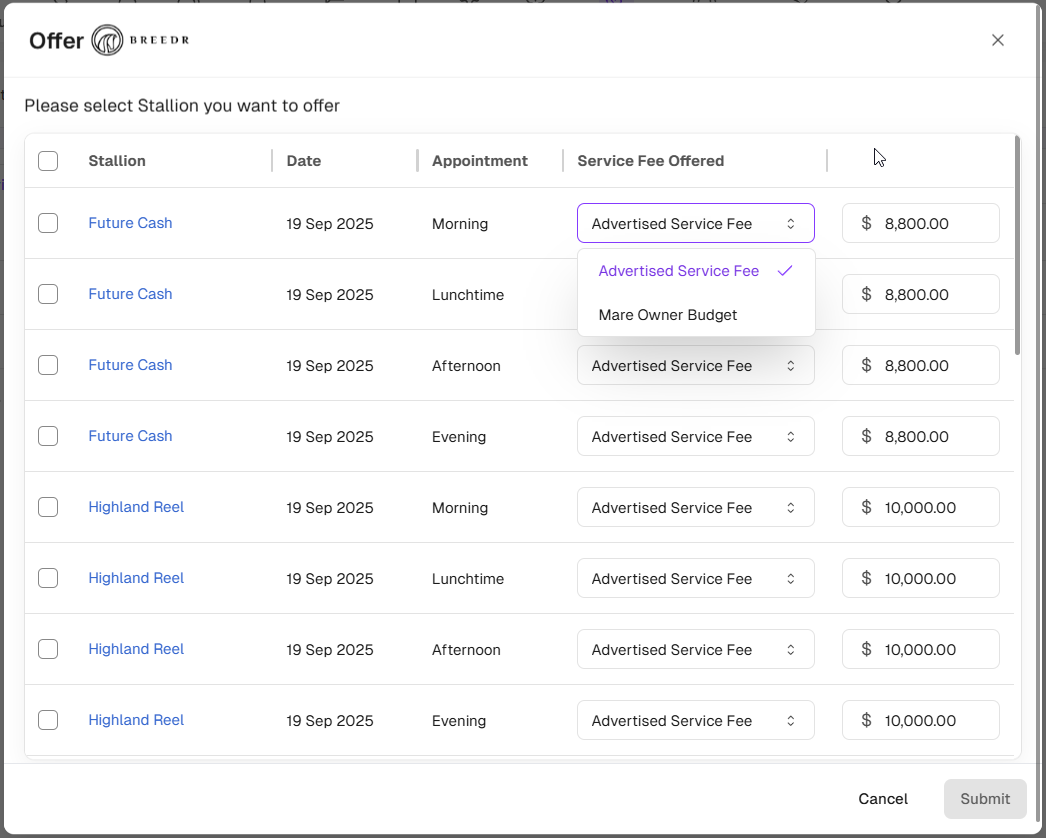 In the dialog, List out all available Stallions and Appointments within the Next 24/48hrs.