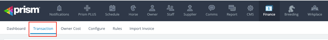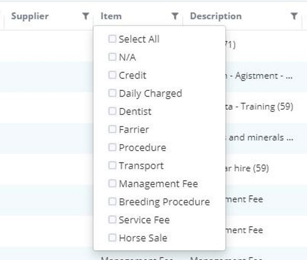 - Expense transactions manually added for charging to specific Horse(s) or specific Owner(s)
