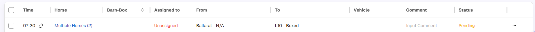 - Select horse (or multiple horses for bulk transport) from drop down list