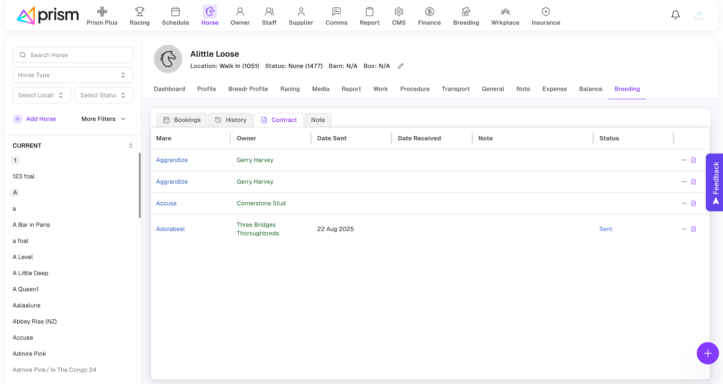 2. Go to Breeding › Stallion Contracts or Mare Profile › Breeding › Contracts.