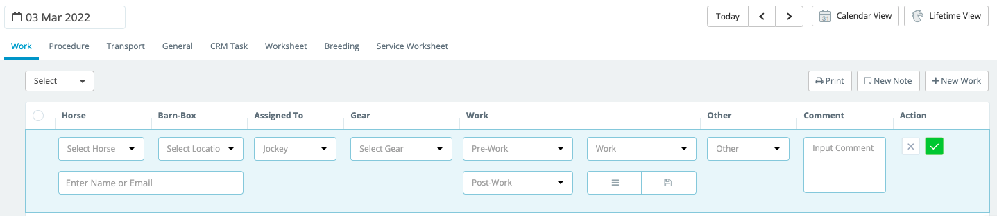 - Add any specific Comments about this horse or work. You and your staff (with the right permission) can also add comments in here after the horse’s work including sectional times, issues or general advice.