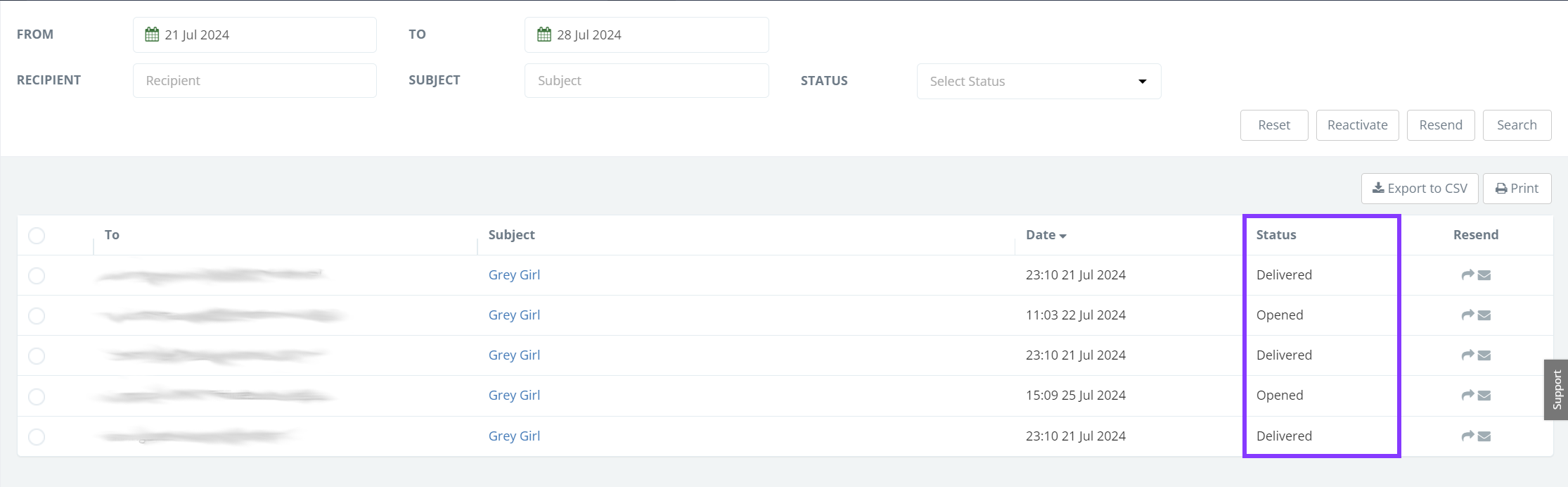 - Opened - This means the email has been opened on the recipient's side. Please note that some email providers such as Gmail, Hotmail and Yahoo scan the content of emails. This scan could in some cases trigger a false "Opened" flag.