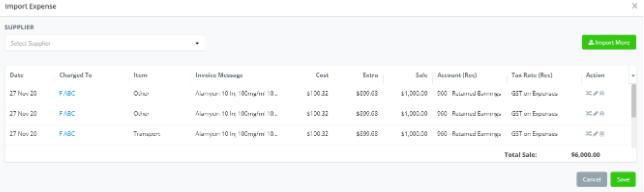 Each expense will be displayed in Finance > Transactions, ready for invoicing via the month-end Statement Run or the Single Invoice feature.