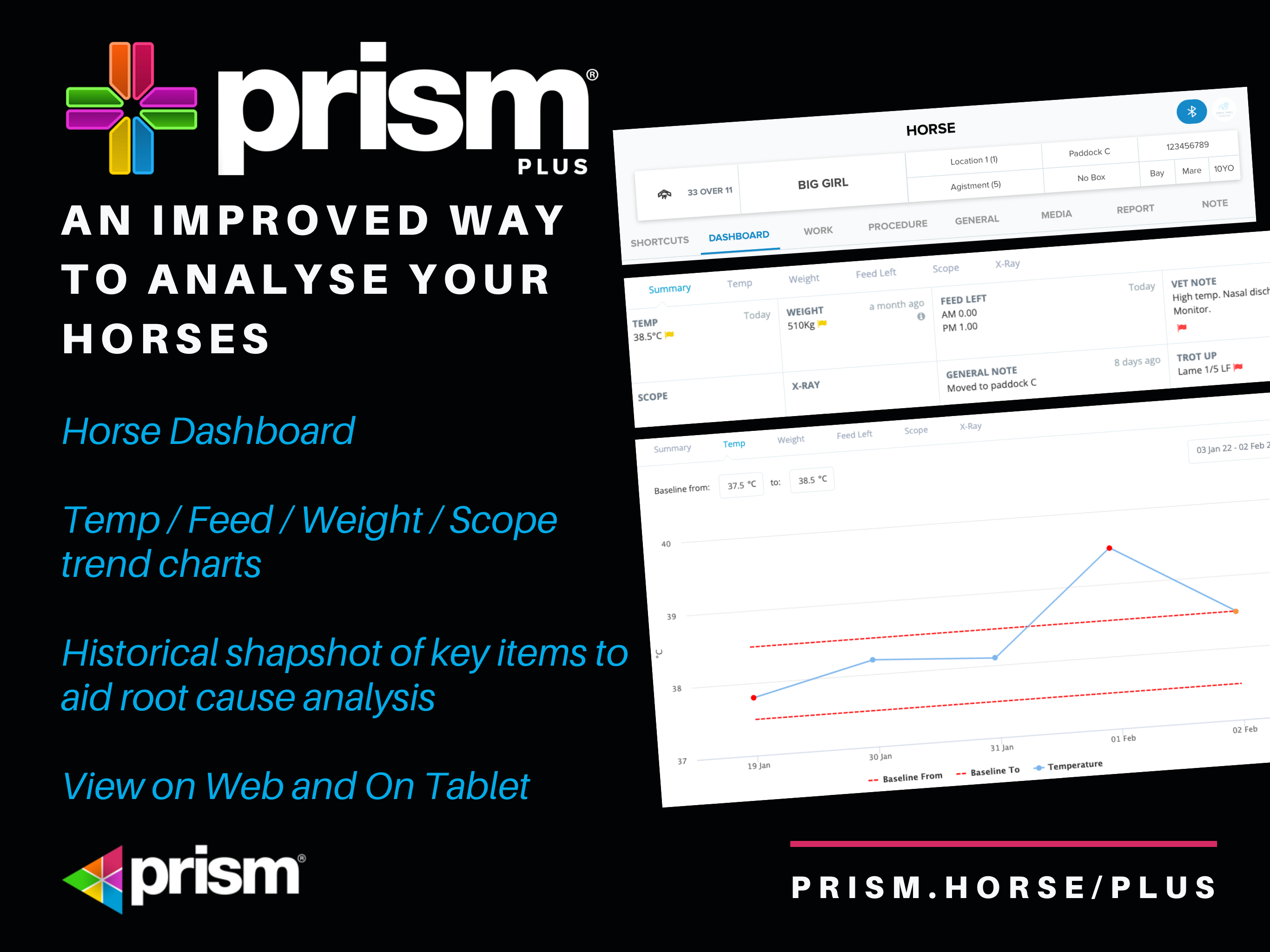 08 September 2022 | Enhanced Feature Prism PLUS If you are subscribed to the Prism Stable or Farm Management module, you can record horse temperature notes along with various other notes (see Get Started with Horse Notes). If you are also subscribed ...
