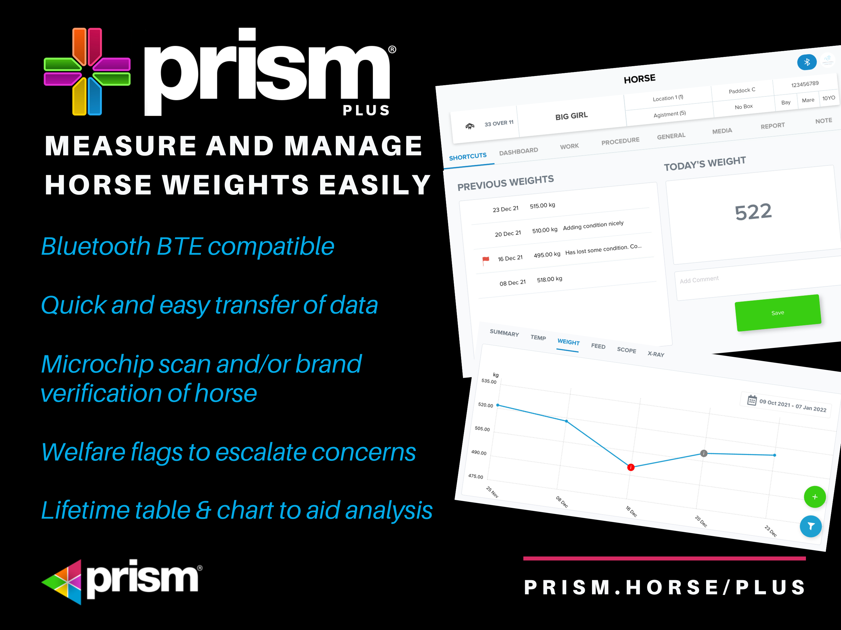 09 August 2022 | New Feature | Prism PLUS Subscribers to Prism PLUS can now maintain a Feed and Supplements master list, and maintain a feeding schedule for each horse. This feature is ideal to digitise your feed schedule and ensure each horse ...