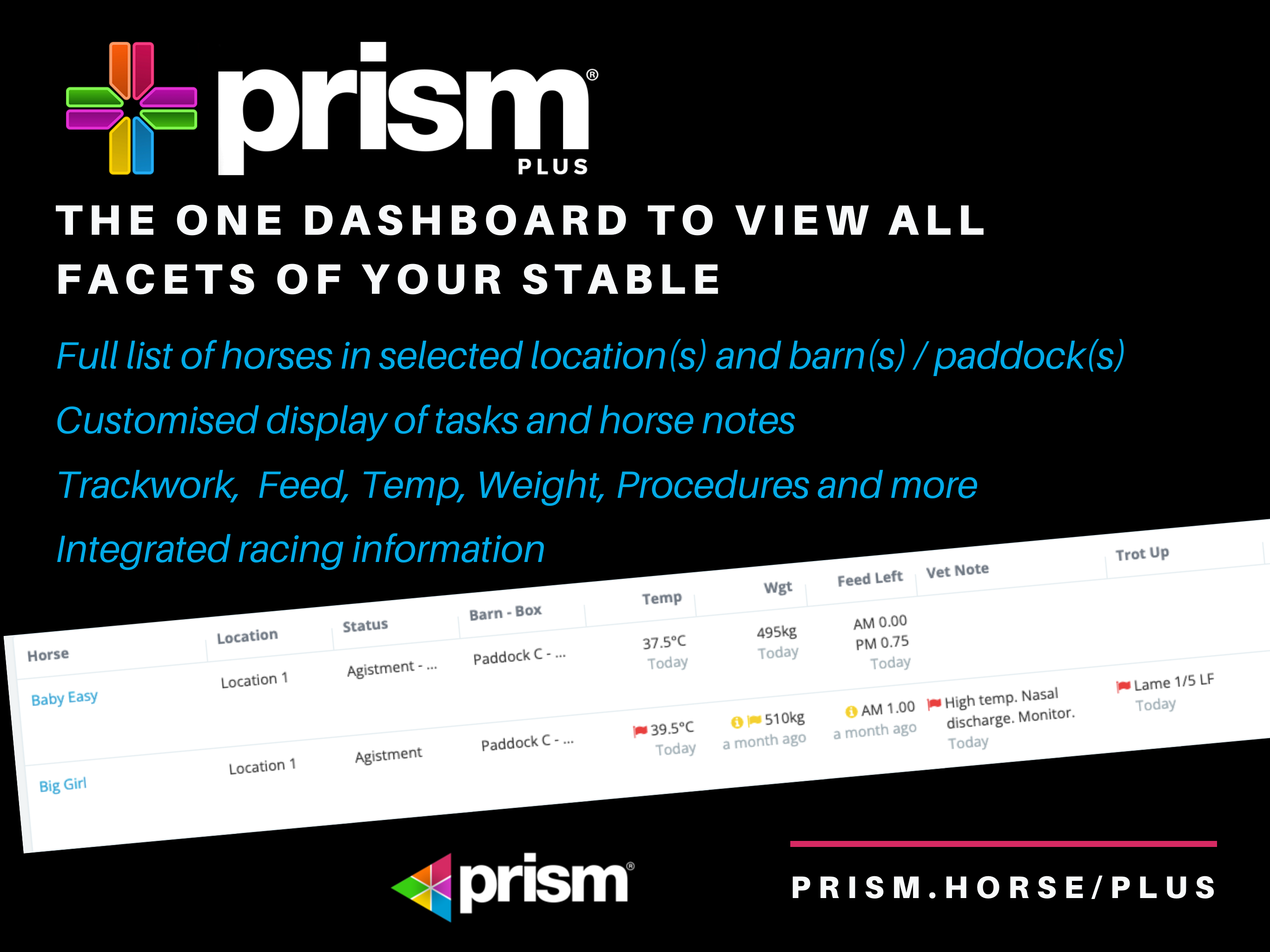 Prism Plus is the latest innovation from Prism, providing another technological leap forward for the thoroughbred racing and breeding industries.
