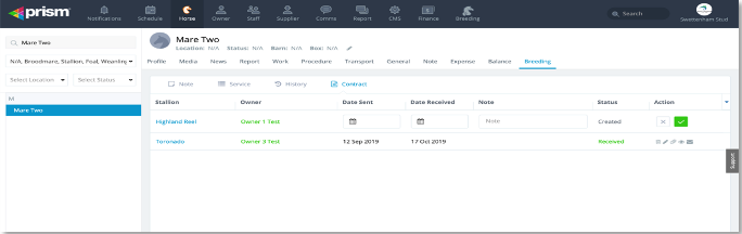 How to send Stallion Contracts), you can view and manage all sent contracts within the Prism Breeding / Breedr Stud module.