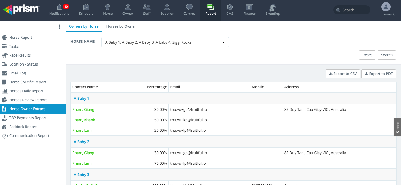 You can now run a report to conveniently list all Owners of each Horse, or all Horses of each Owner.