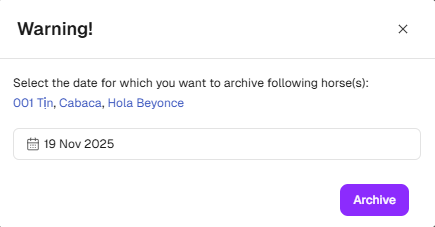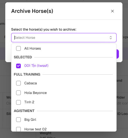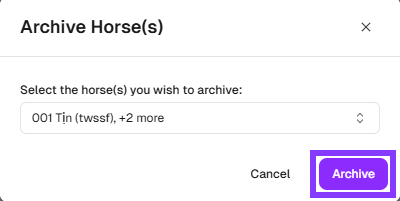 5. Click on Archive to archive the selected horses.