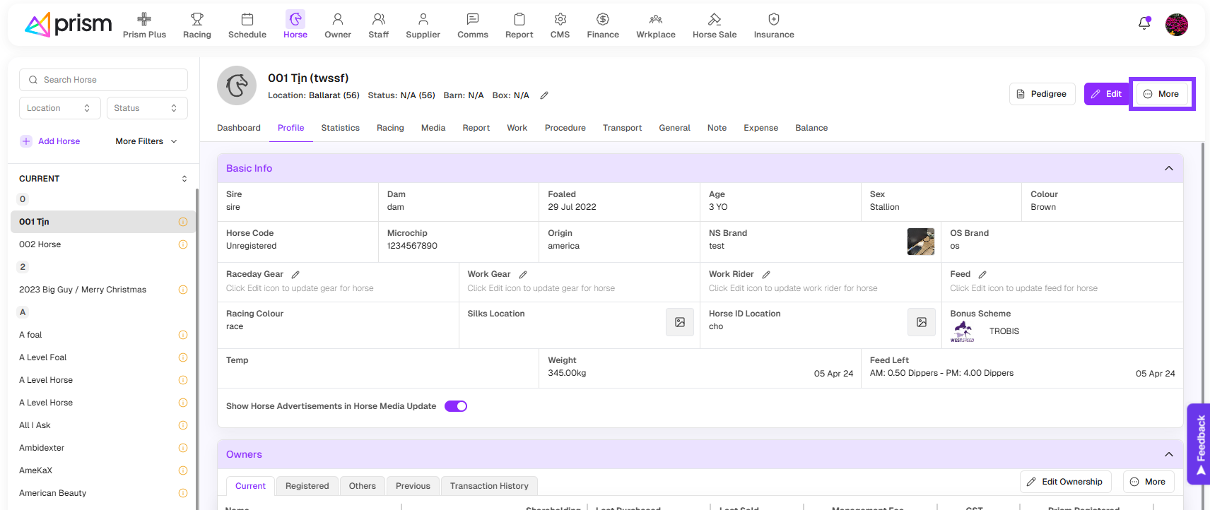 The horse profile from where you clicked on "More" will be selected by default here. You can deselect this horse and select other horses.