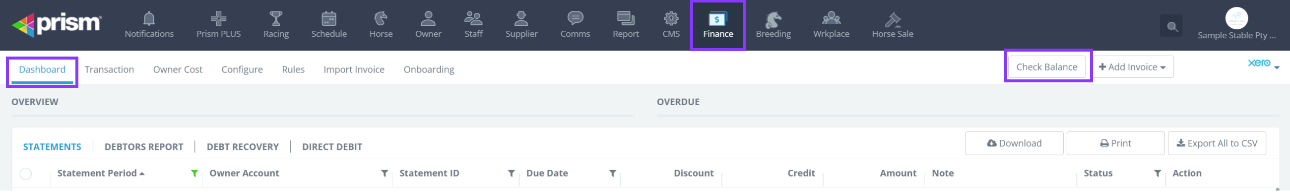 23 October 2019 | Prism Finance You can now view the amount owed by each owner, for each horse. Go to the Finance Account of the Owner, and then the BALANCE tab.