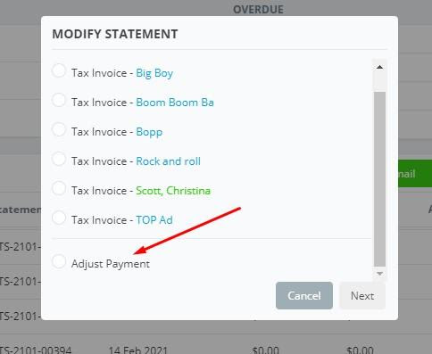 - Modify statement popup, you need to select Adjust Payment option, a dialog shows