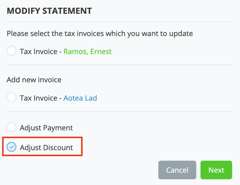 Edit or delete the discount where necessary, then select Regenerate Statement