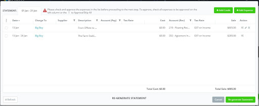 - Approve expenses and credits, then click ‘Re-generate Statement’ button