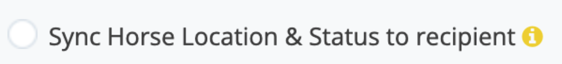 This will permanently synchronise the Location and Status you set in your Prism account, to the supplier’s Prism account. The supplier will not be able to update location and status for their own records and owner billing. This option should only be selected if your supplier does not need to manage a horse’s location or status for their own billing activities.