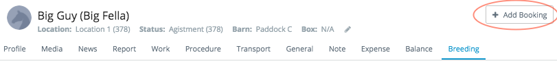 Or you can Add Stallion Booking from either your Stallion's profile or your Mare's profile, or from the Breeding Dashboard.