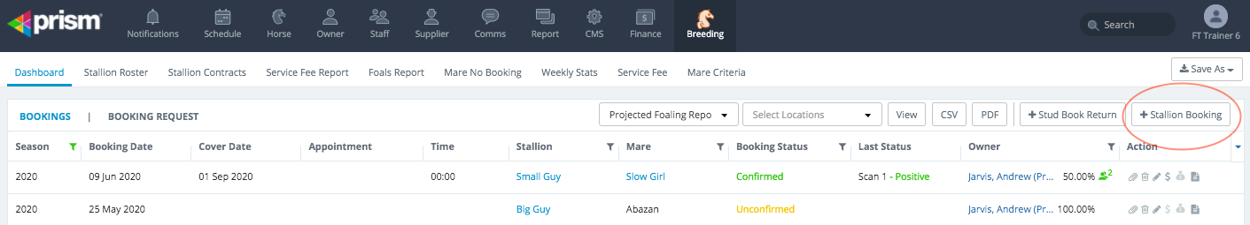 The method for adding stallion bookings has been refined and simplified into one process, regardless of whether you are adding a booking to a Stallion: