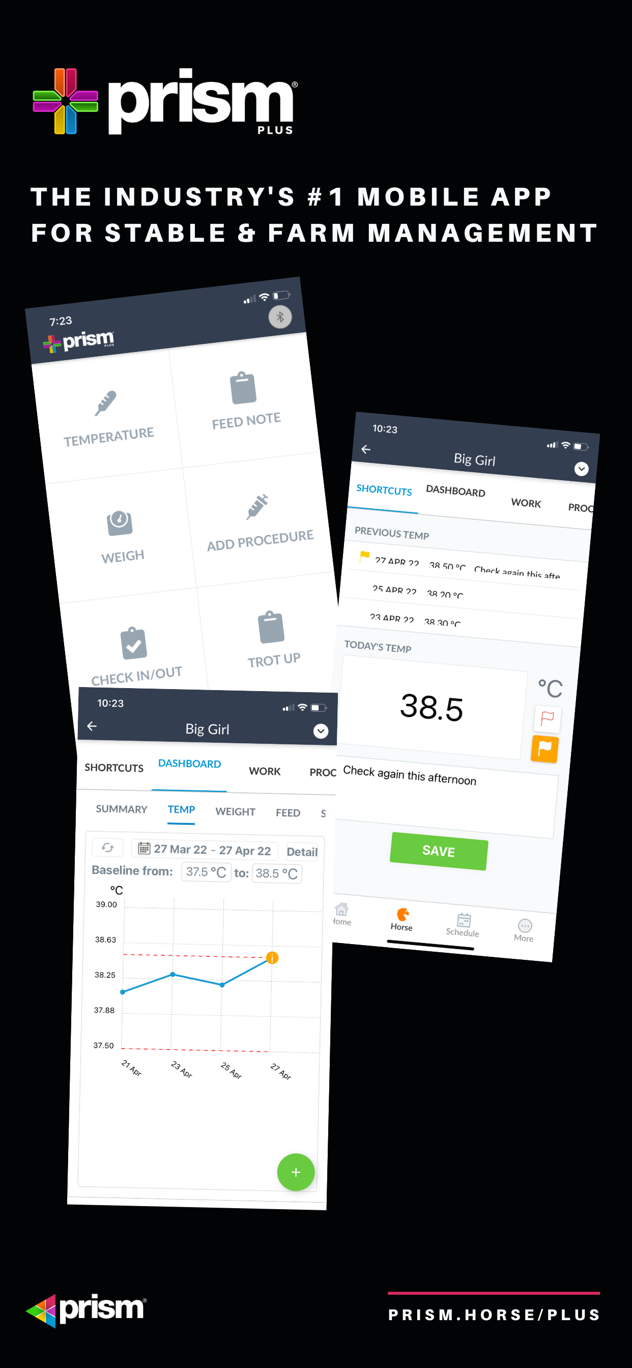 08 September 2022 | Enhanced Feature Prism PLUS If you are subscribed to the Prism Stable or Farm Management module, you can record horse temperature notes along with various other notes (see Get Started with Horse Notes). If you are also subscribed ...