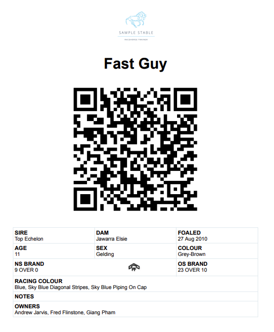 Rather than scanning a Box QR Code, you may opt to print a Horse Card. This has relevant information about the horse, along with a QR code.