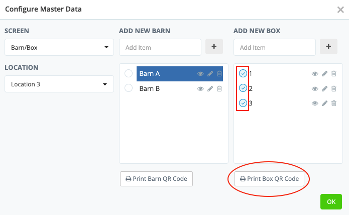 Alternatively, you can select multiple Barns or Boxes and view and print all at once.
