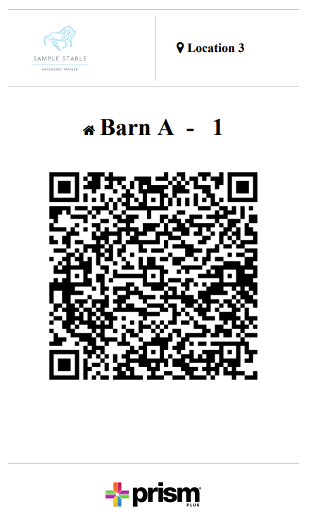 For each Barn (or Paddock) and each Box in a Barn, you can click on the eye icon to view and print an A4 card, complete with QR Code ready to scan via the Prism PLUS apps.