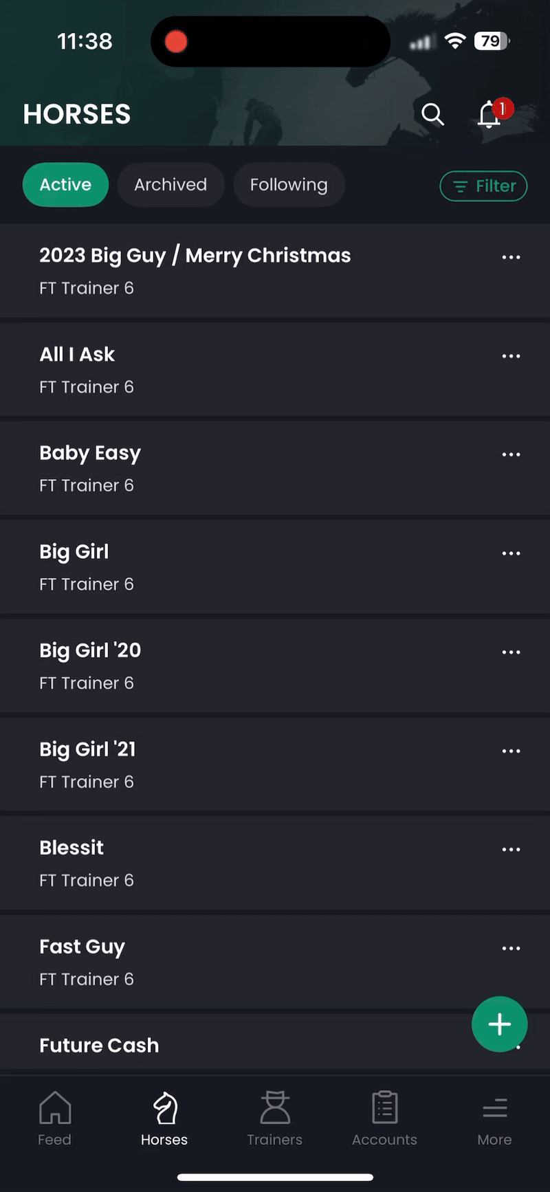 - Tap the + floating button in the bottom-right corner of the Horses tab.